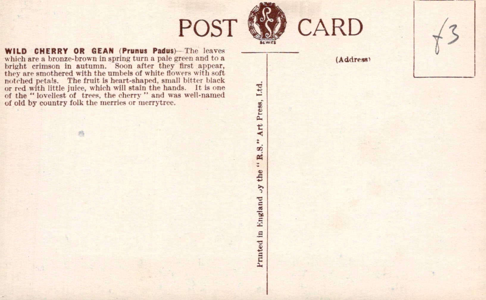 This is a Nature Postcard - Trees, Wild Cherry Tree or Gean  VT429