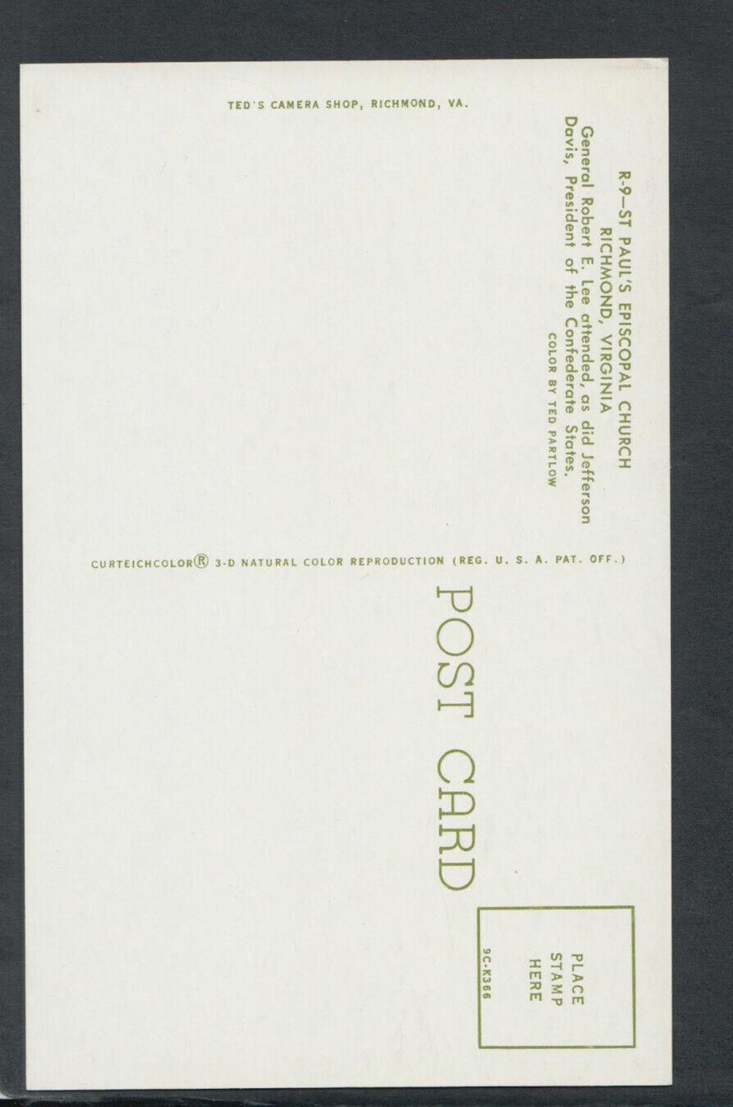 Postcard Description: America Postcard - St Paul's Episcopal Church, Richmond, Virginia