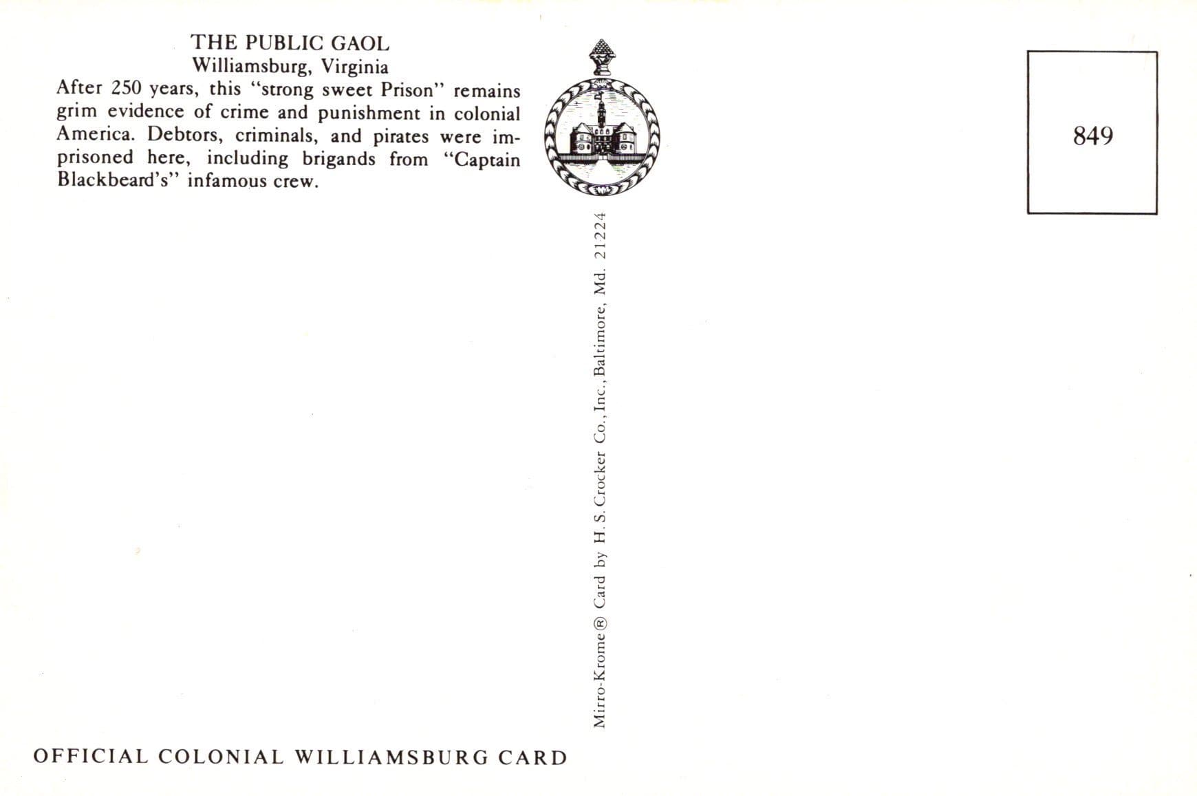 America Postcard - The Public Gaol, Williamsburg, Virginia SW841
