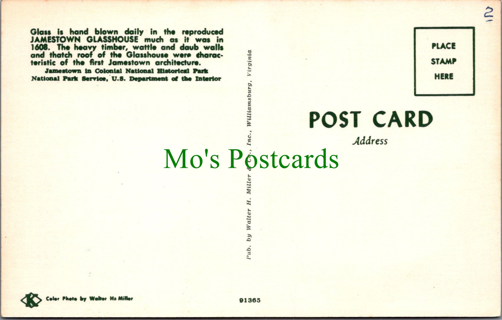 Jamestown Glasshouse, Virginia.  This is a fantastic standard sized postcard which would be a great addition to your postcard collection.