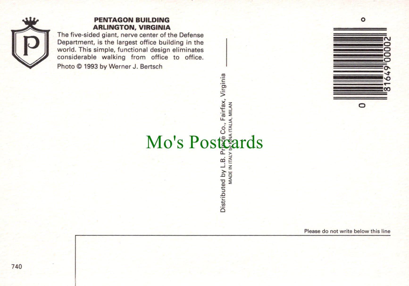 Mo's Postcards offers for sale a postcard showing the Pentagon Building, Arlington, Virginia.