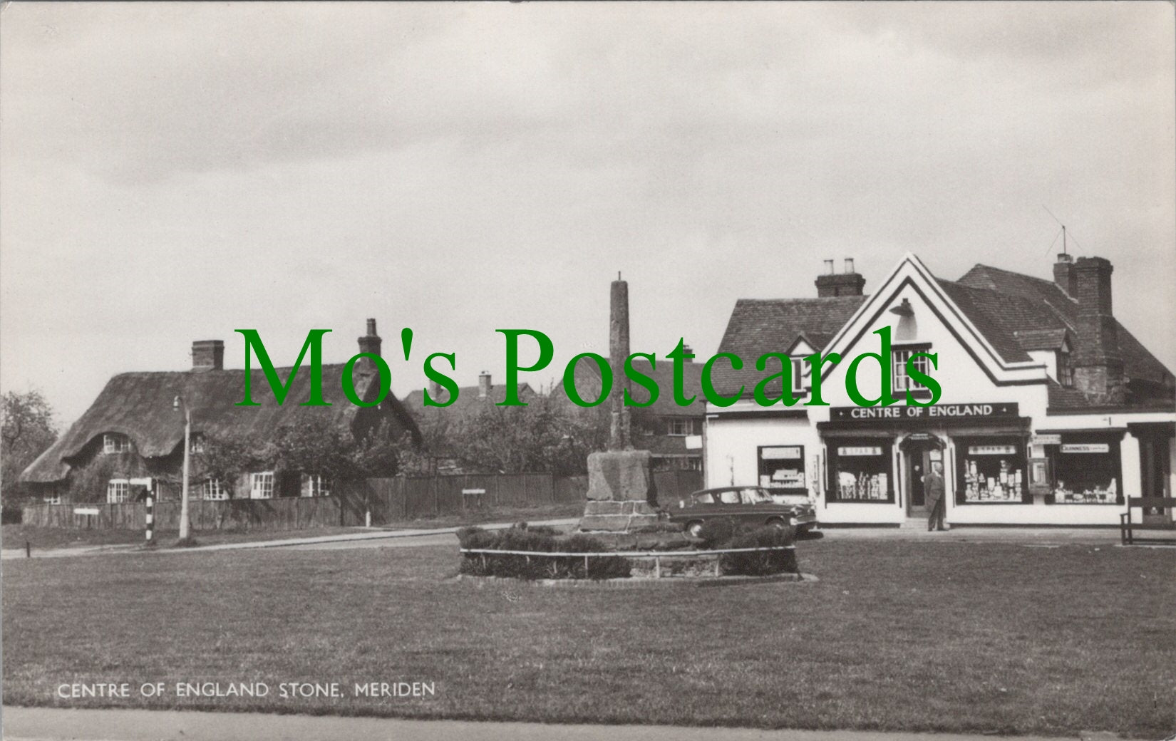 This is a postcard of the Centre of England Stone, Meriden, Warwickshire