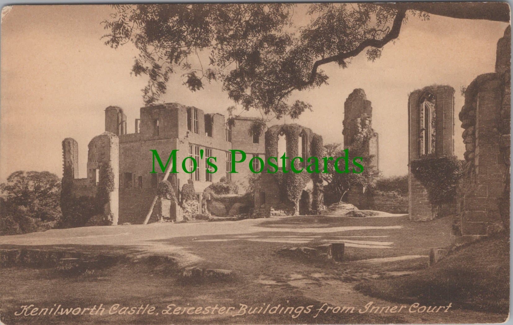 Mo's Postcards offers for sale a postcard of Kenilworth Castle, Warwickshire. Leicester Buildings From Inner Court.