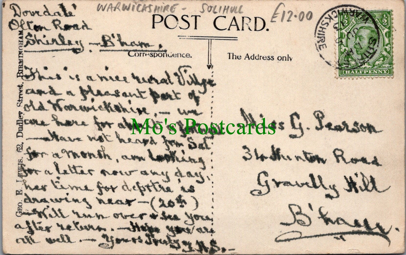 Tanworth Road, Shirley, Solihull, Warwickshire. This is a fantastic standard sized postcard which would be a great addition to your postcard collection. Published by Geo.E.Lewis. Posted in 1913.