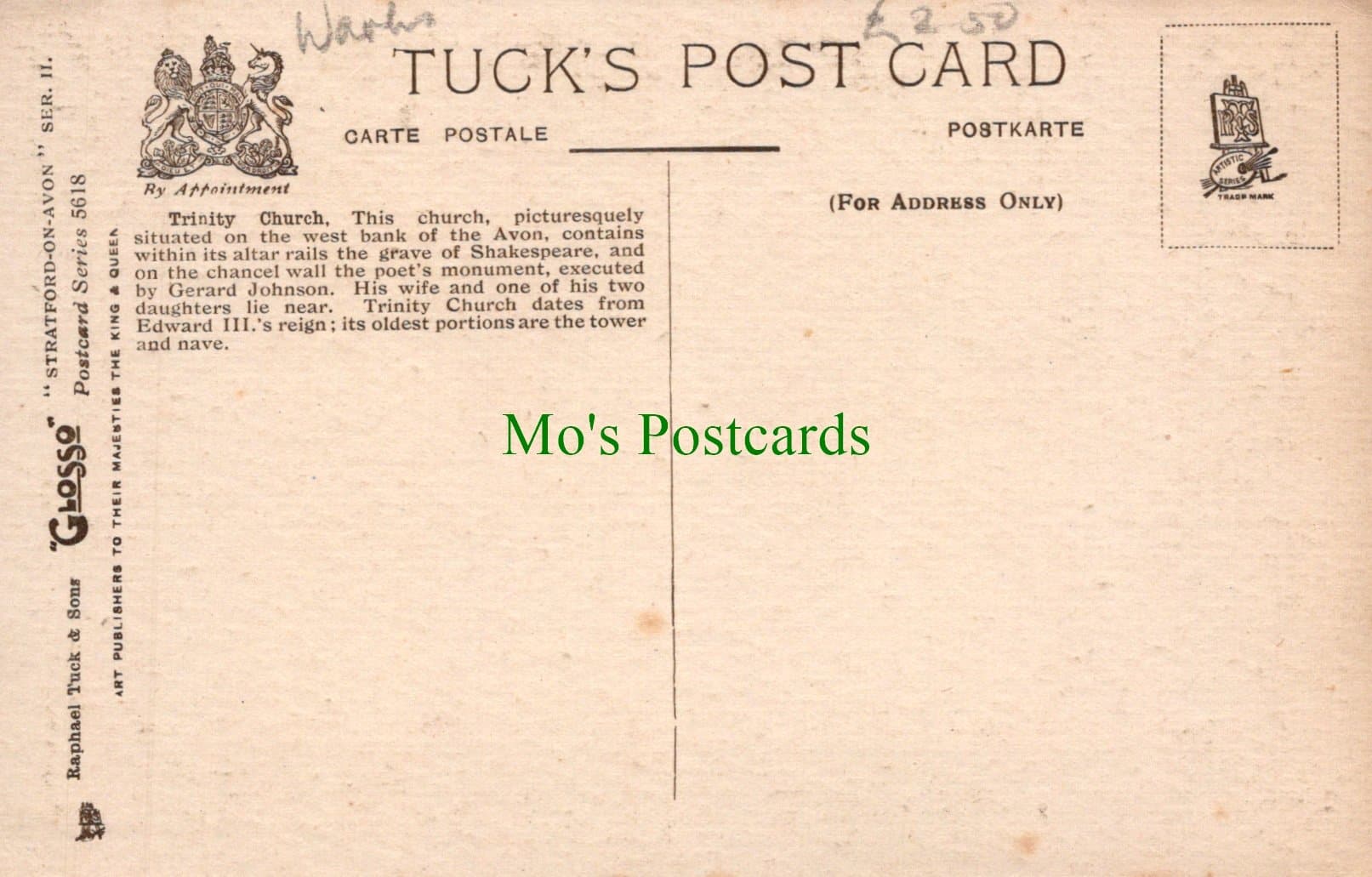Mo's Postcards offers for sale a postcard showing Trinity Church, Stratford-On-Avon, Warwickshire