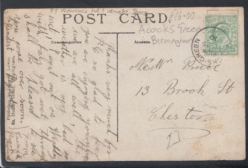 Warwickshire Postcard - Alexander Road, Acocks Green, Birmingham, 1910 - Mo’s Postcards
