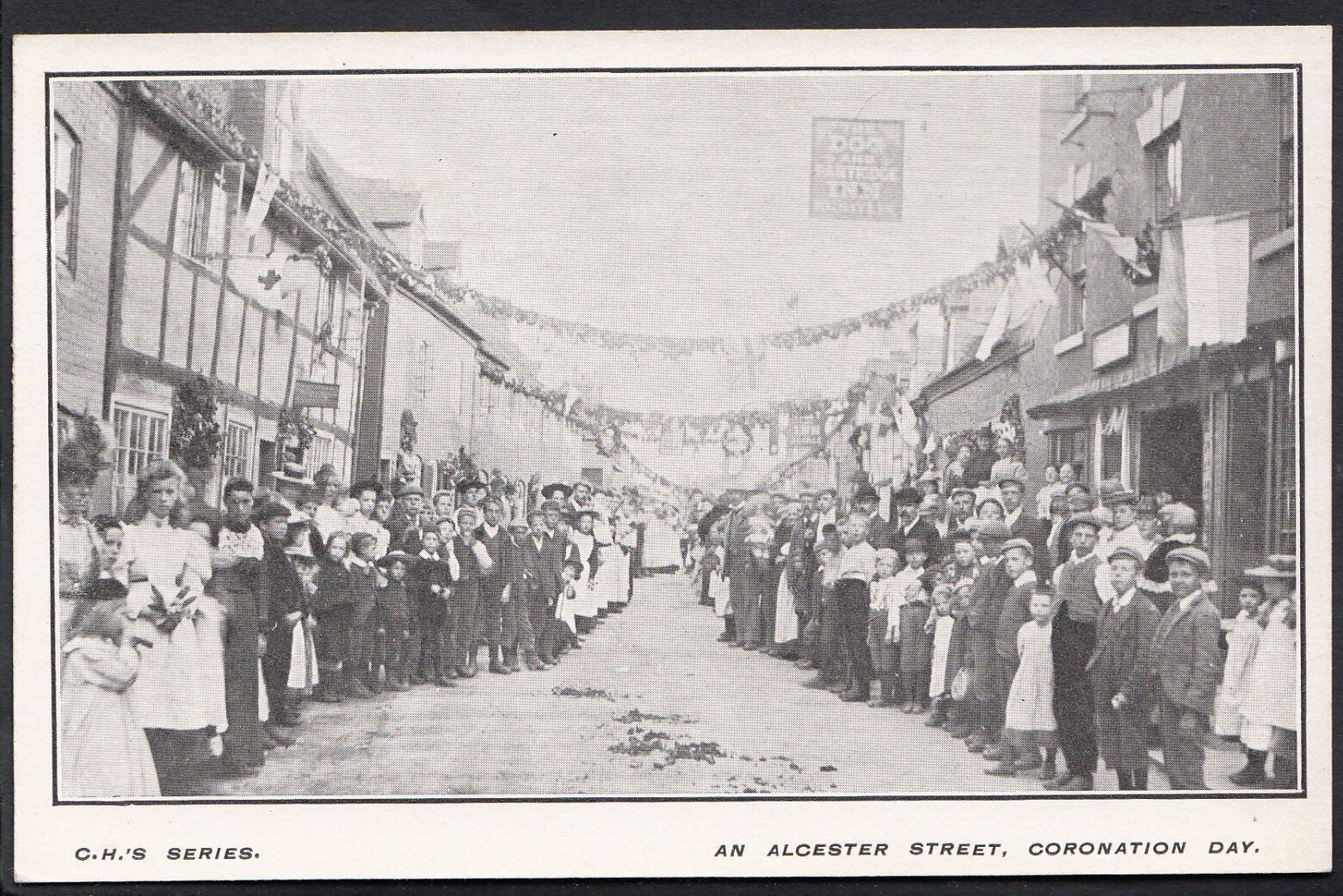 Title: Warwickshire Postcard - An Alcester Street - Coronation Day