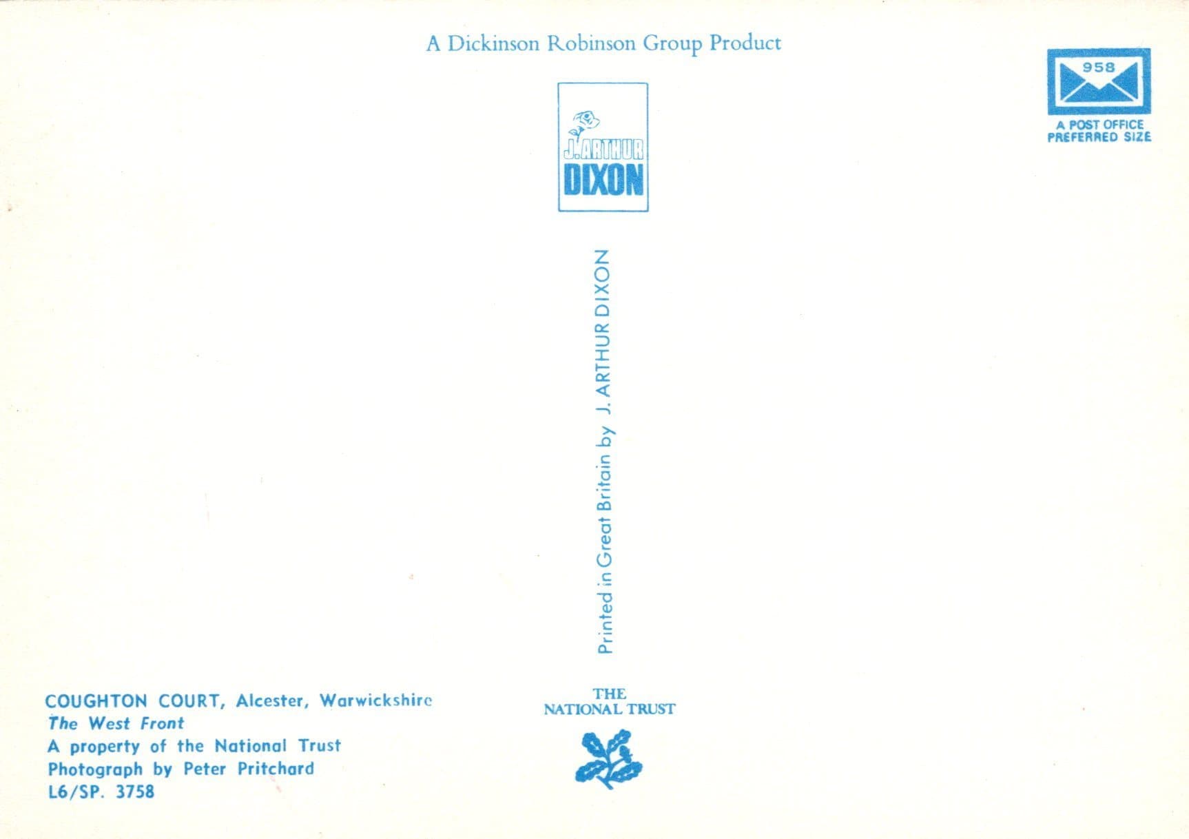 Warwickshire Postcard - The West Front, Coughton Court, Alcester SW1019