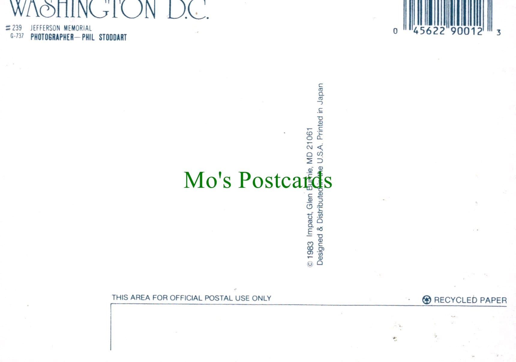 Mo's Postcards offers for sale a postcard showing the Jefferson Memorial, Washington D.C.