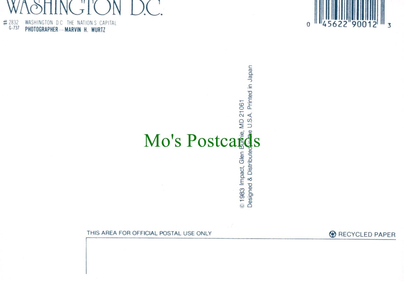Mo's Postcards offers for sale a postcard showing The Nation's Capital, Washington D.C.