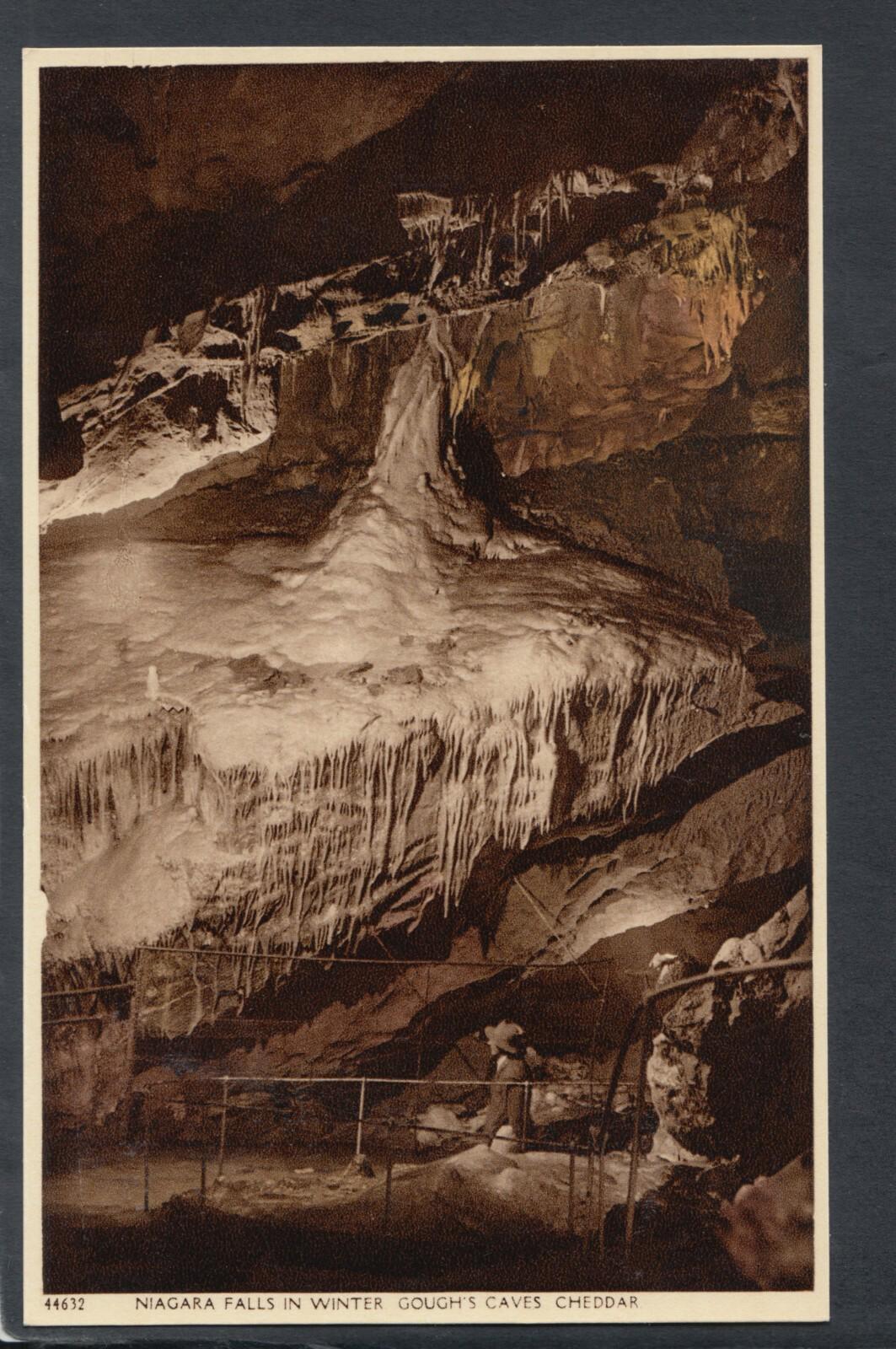 Postcard Description: Somerset Postcard - Niagara Falls in Winter, Gough's Caves, Cheddar