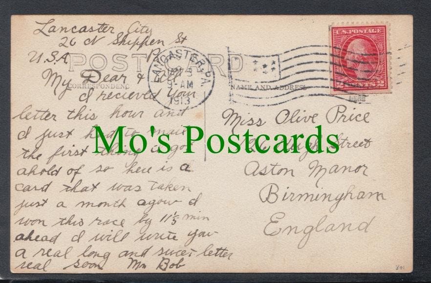 Standard size postcard. Posted From Lancaster, PA in 1913.