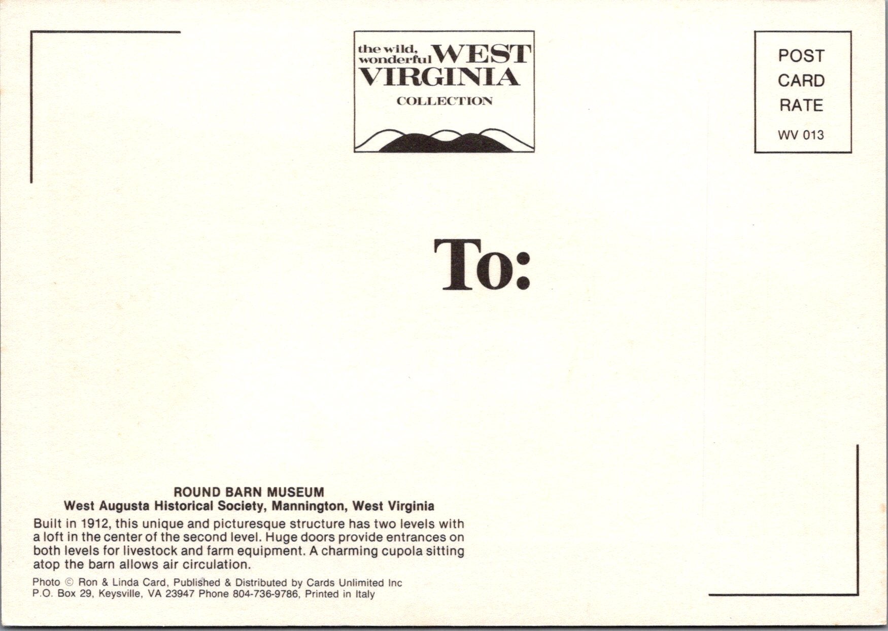 This is an America Postcard - Round Barn Museum, Mannington, West Virginia SW10327