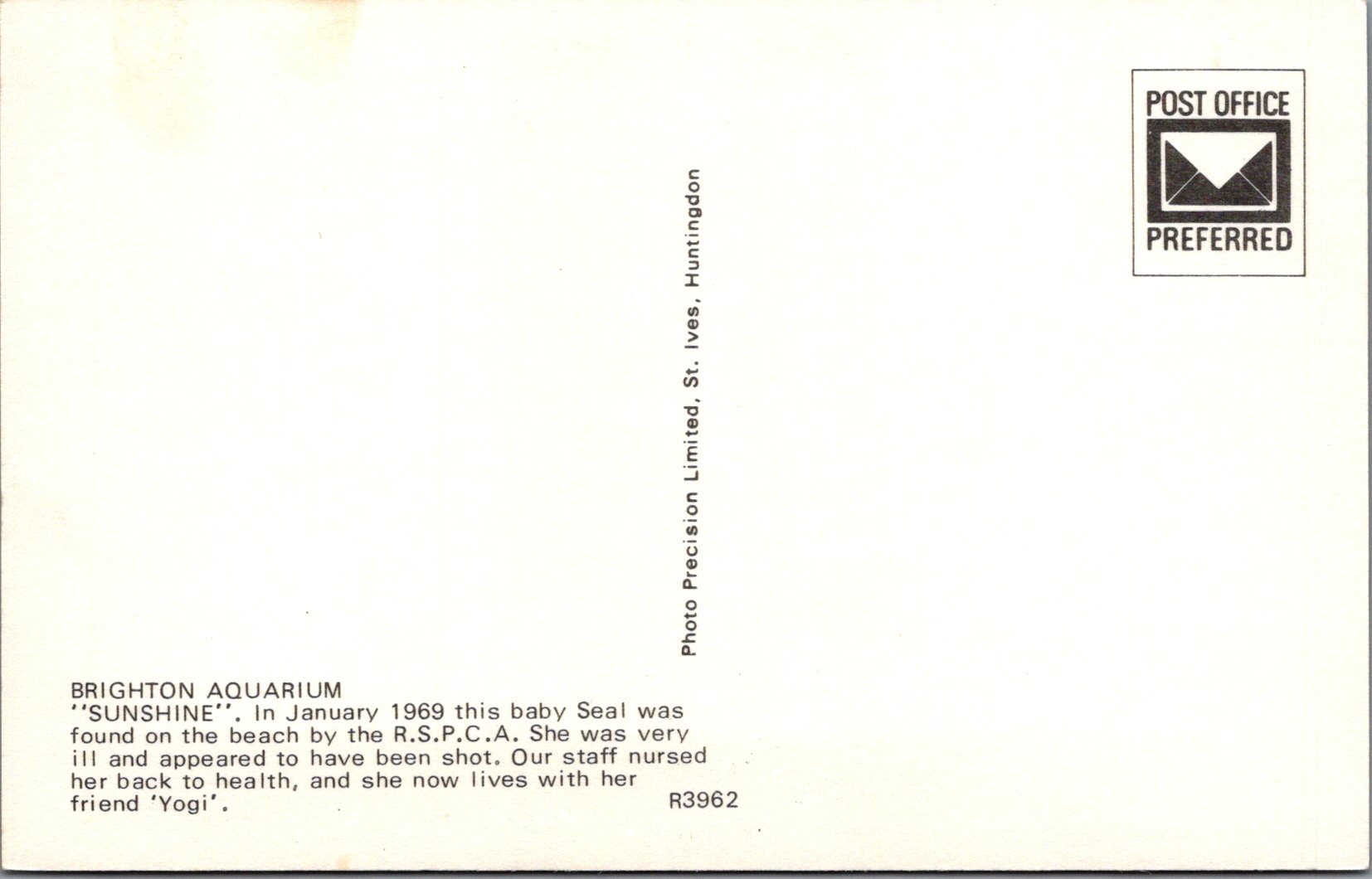 Mo's Ref: Animals Postcard - Seal, Brighton Aquarium SW16081