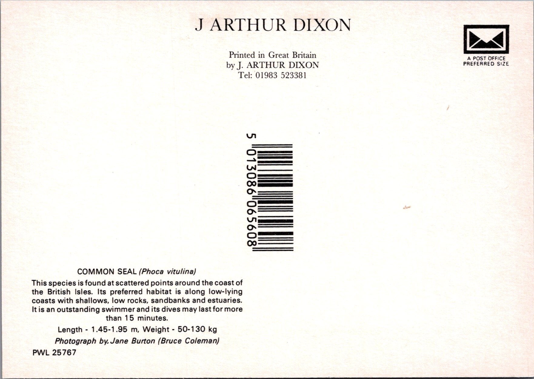 Mo's Ref:  Animals Postcard - Common Seal, Phoca Vitulina SW17259