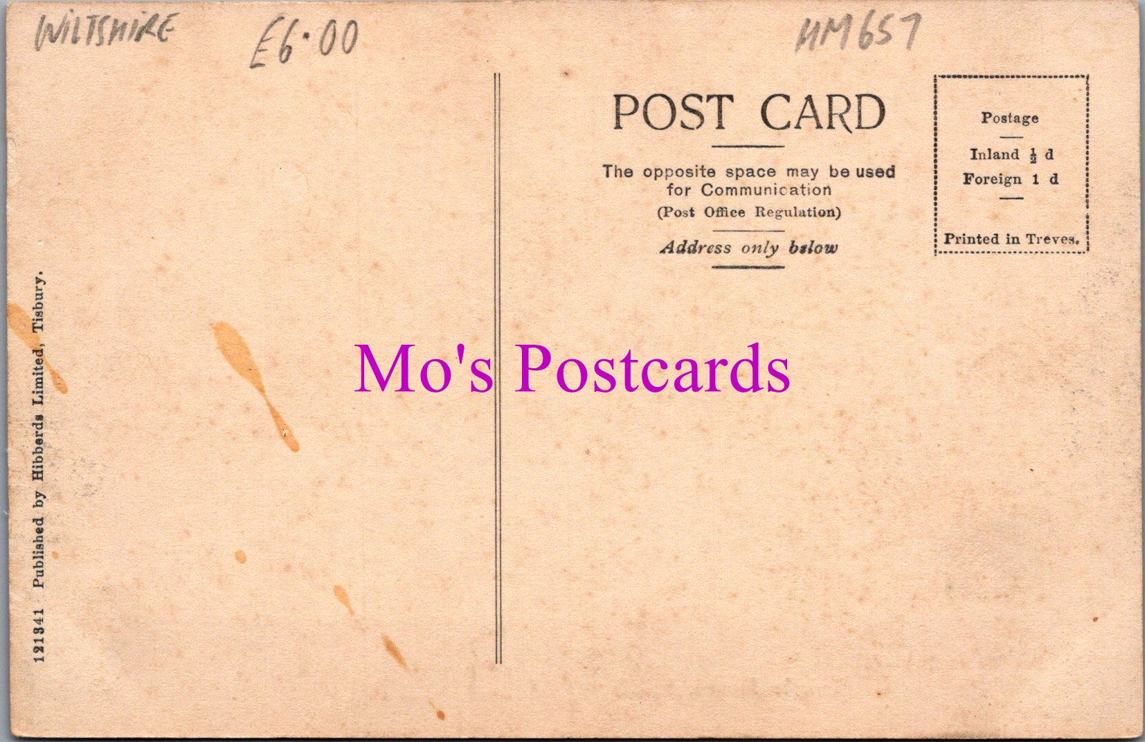 The 'Mo's Postcards' watermark does not appear on the actual postcard'.