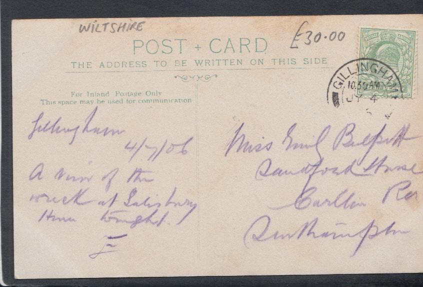 Wiltshire Postcard - Railway Accident at Salisbury, June 1906