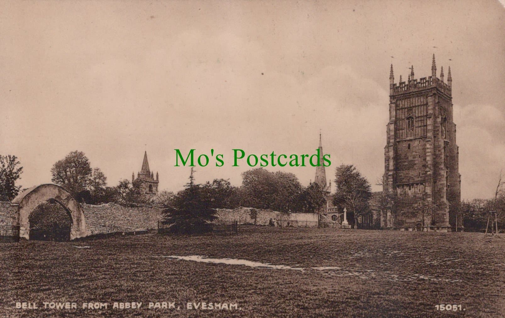 Postcard showing the Bell Tower From Abbey Park, Evesham, Worcestershire.
