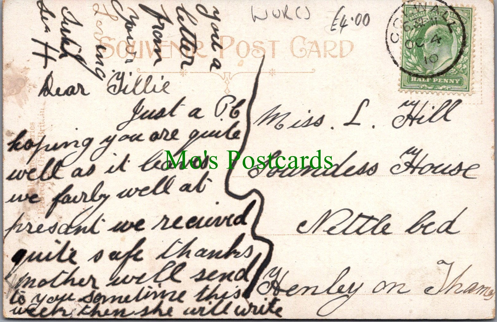 All of our beautiful postcards are posted to you inside a plastic sleeve and a board backed envelope which will be marked 'Please do not bend'. The 'Mo's Postcards' watermark does not appear on the actual postcard'.
