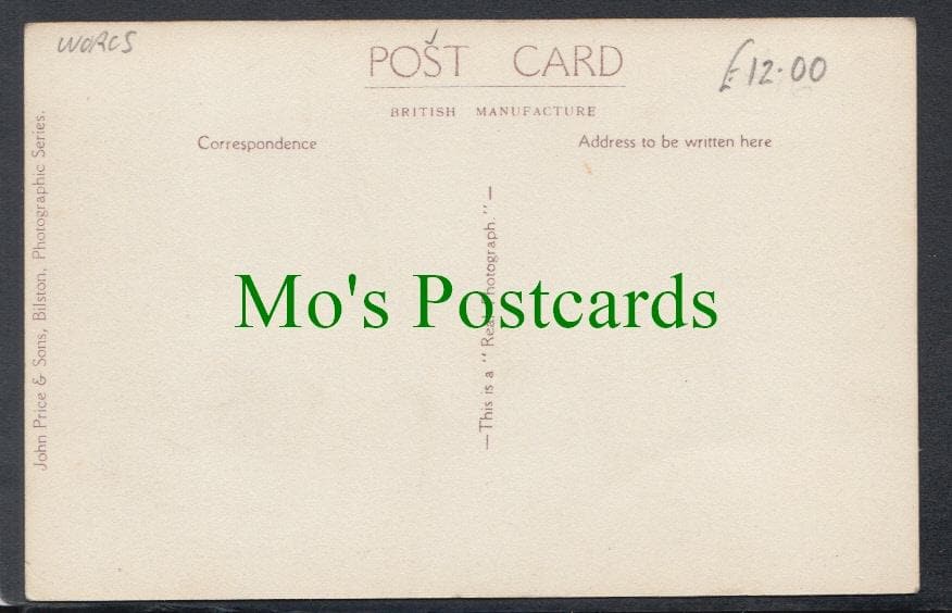 Standard size postcard. Published by John Price & Sons. Curved surface crease
