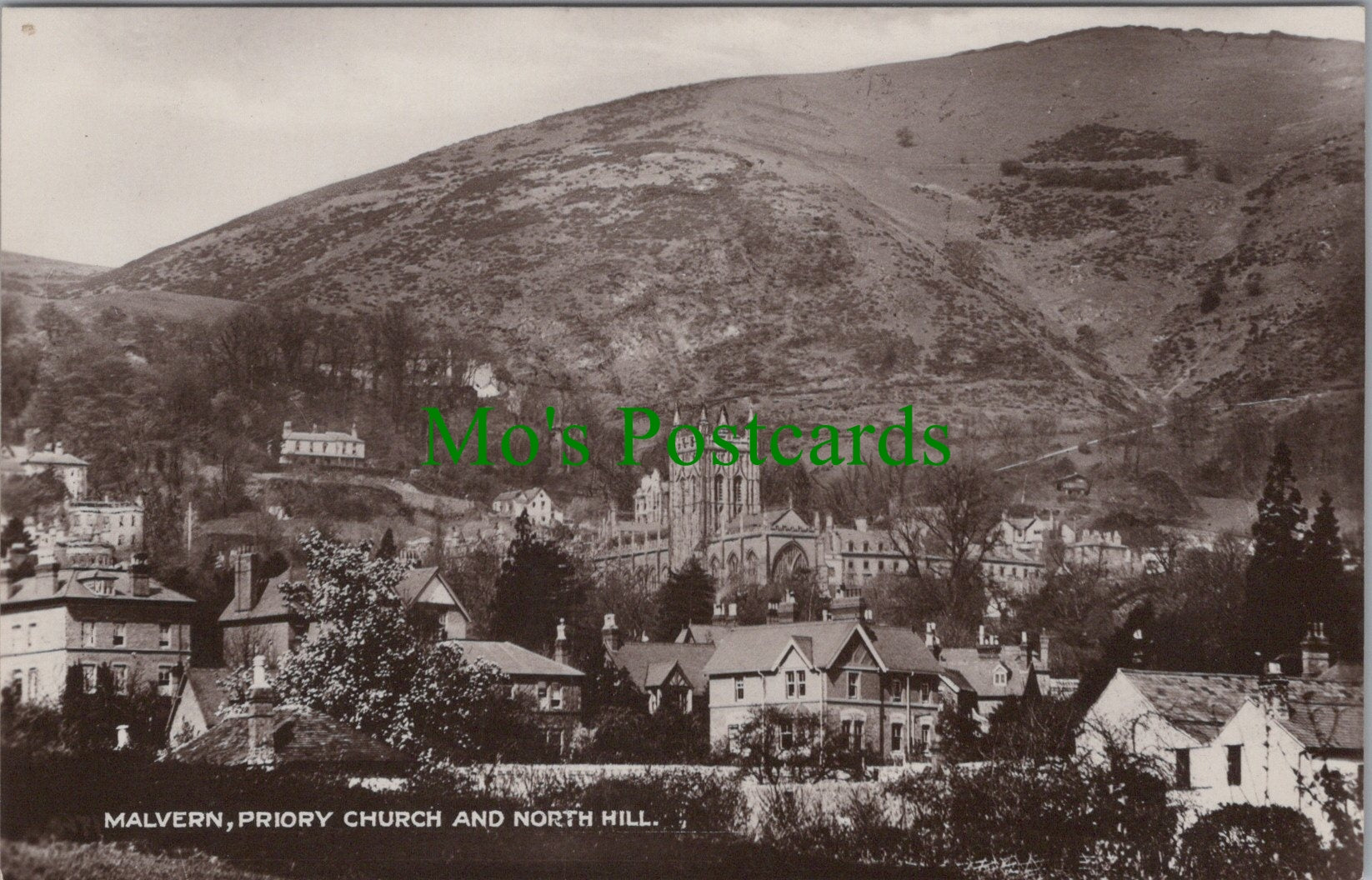 Mo's Ref: Worcestershire Postcard - Malvern Priory Church and North Hill Ref.SW9923