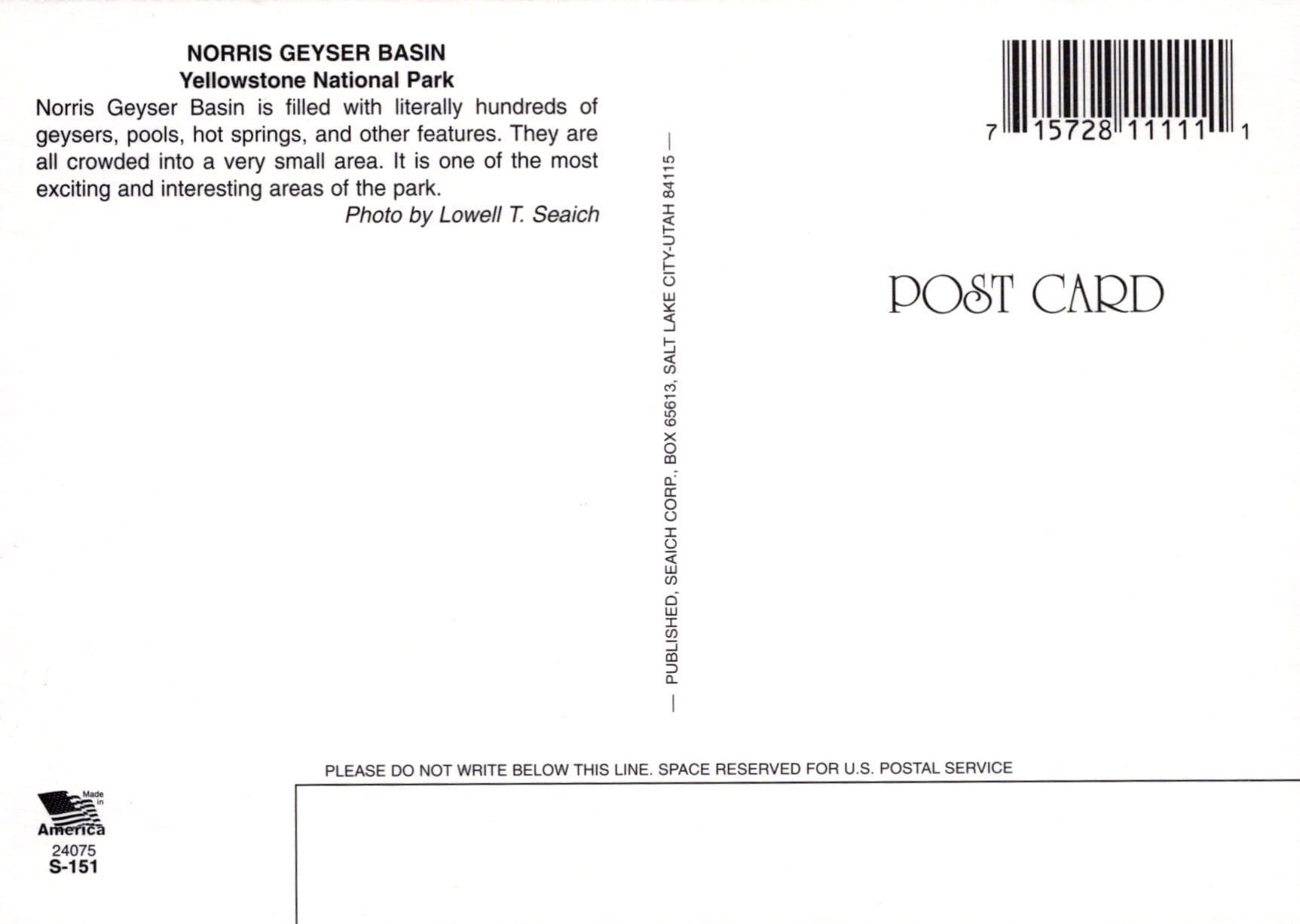 America Postcard - Norris Geyser Basin, Yellowstone National Park SW58