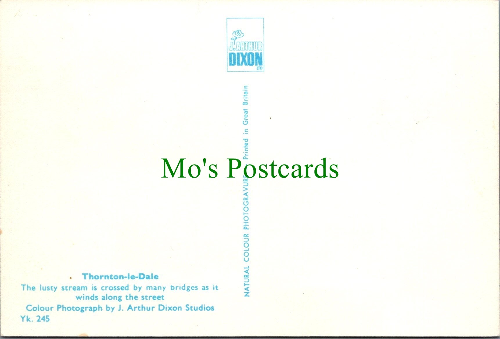 All of our beautiful postcards are posted to you inside a plastic sleeve and a board backed envelope which will be marked 'Please do not bend'. The 'Mo's Postcards' watermark does not appear on the actual postcard'.