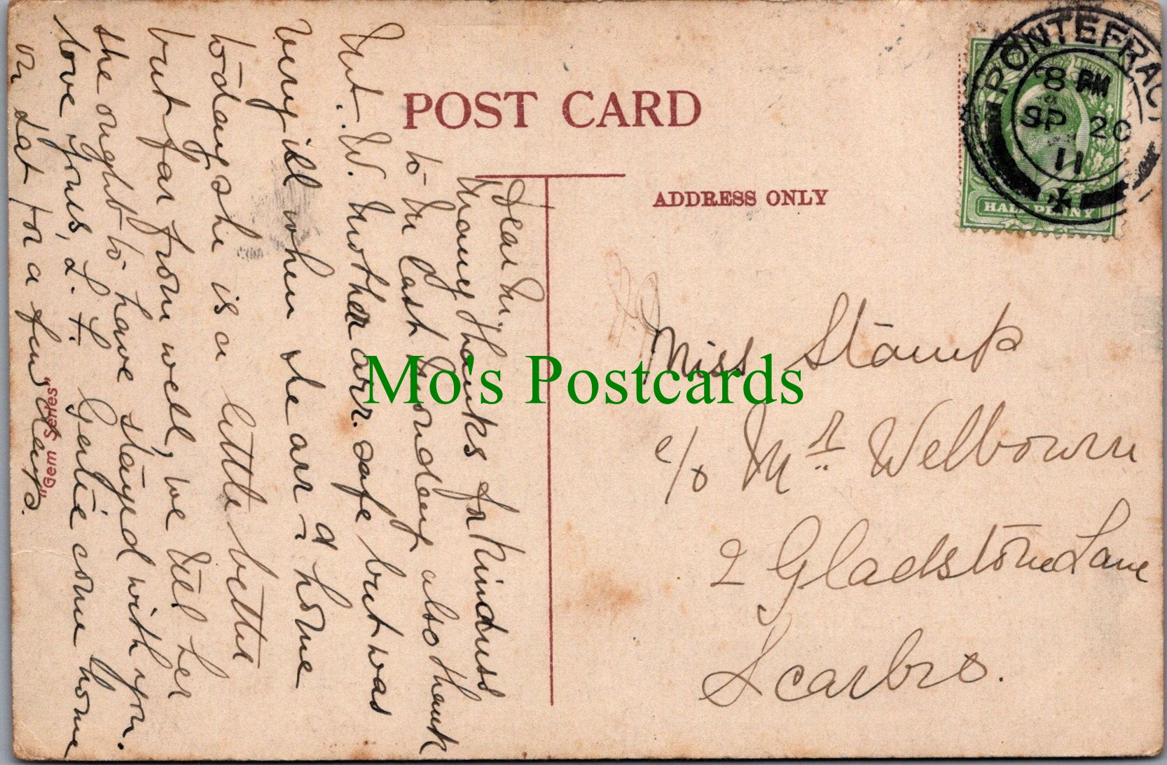 The 'Mo's Postcards' watermark does not appear on the actual postcard'.