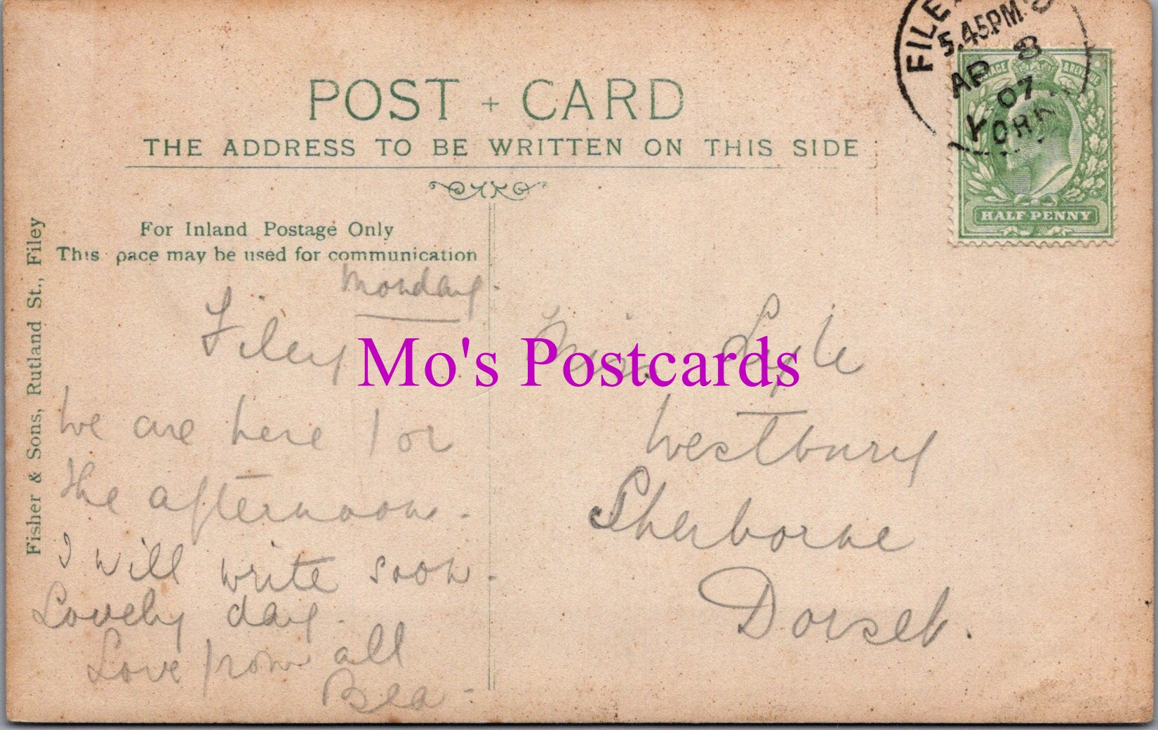 The 'Mo's Postcards' watermark does not appear on the actual postcard'.