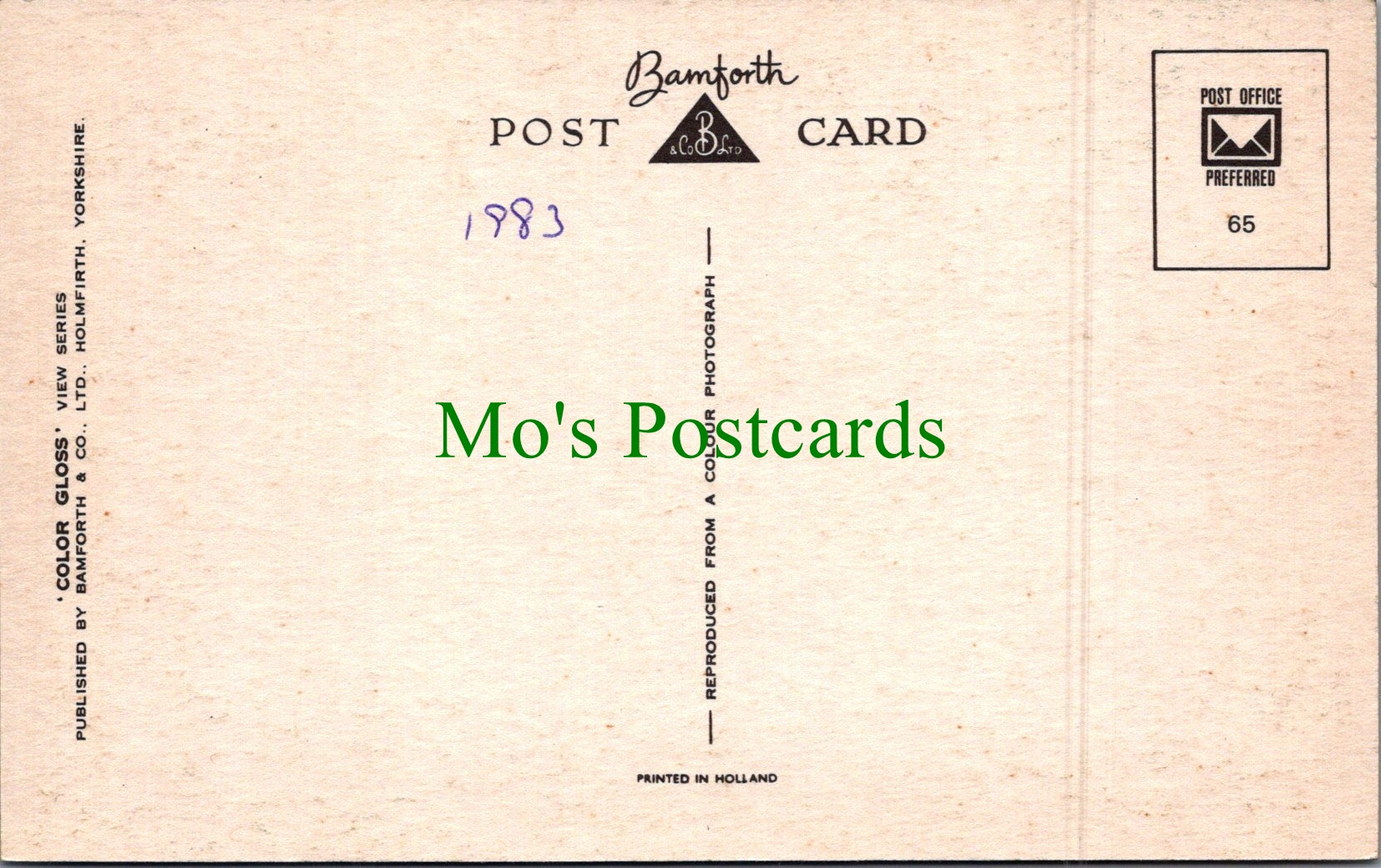 The 'Mo's Postcards' watermark does not appear on the actual postcard'.