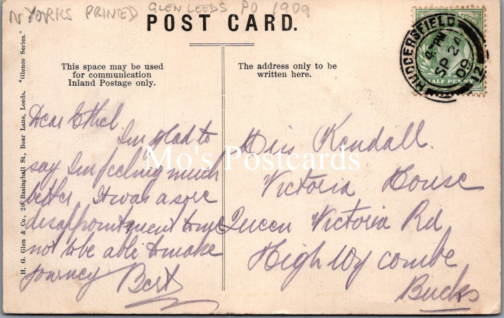 The 'Mo's Postcards' watermark does not appear on the actual postcard'.