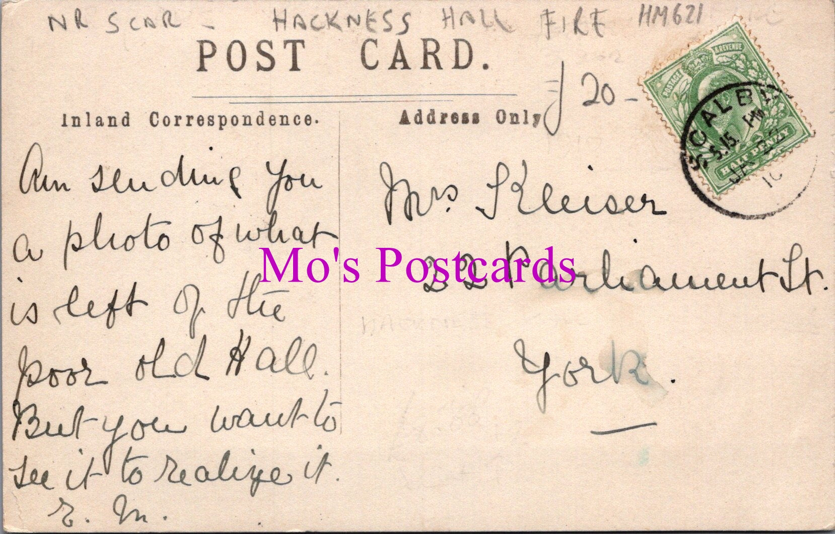Mo's Ref: Yorkshire Postcard - Hackness Hall Fire, Scarborough HM621