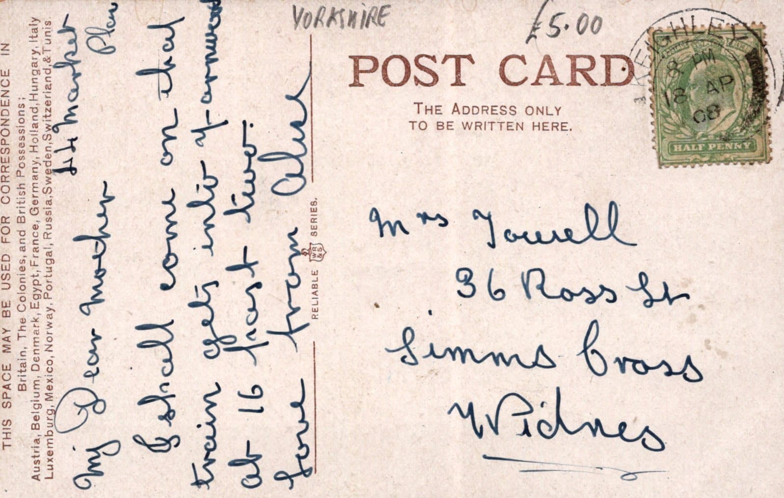 Yorkshire Postcard - Highfield Lane, Keighley, 1908 - Mo’s Postcards