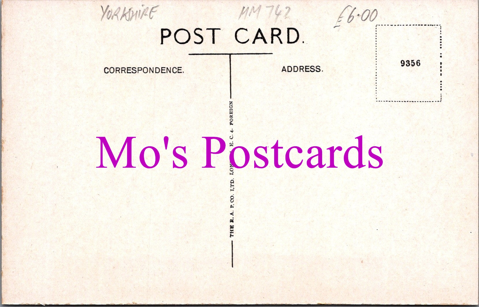 The 'Mo's Postcards' watermark does not appear on the actual postcard'.