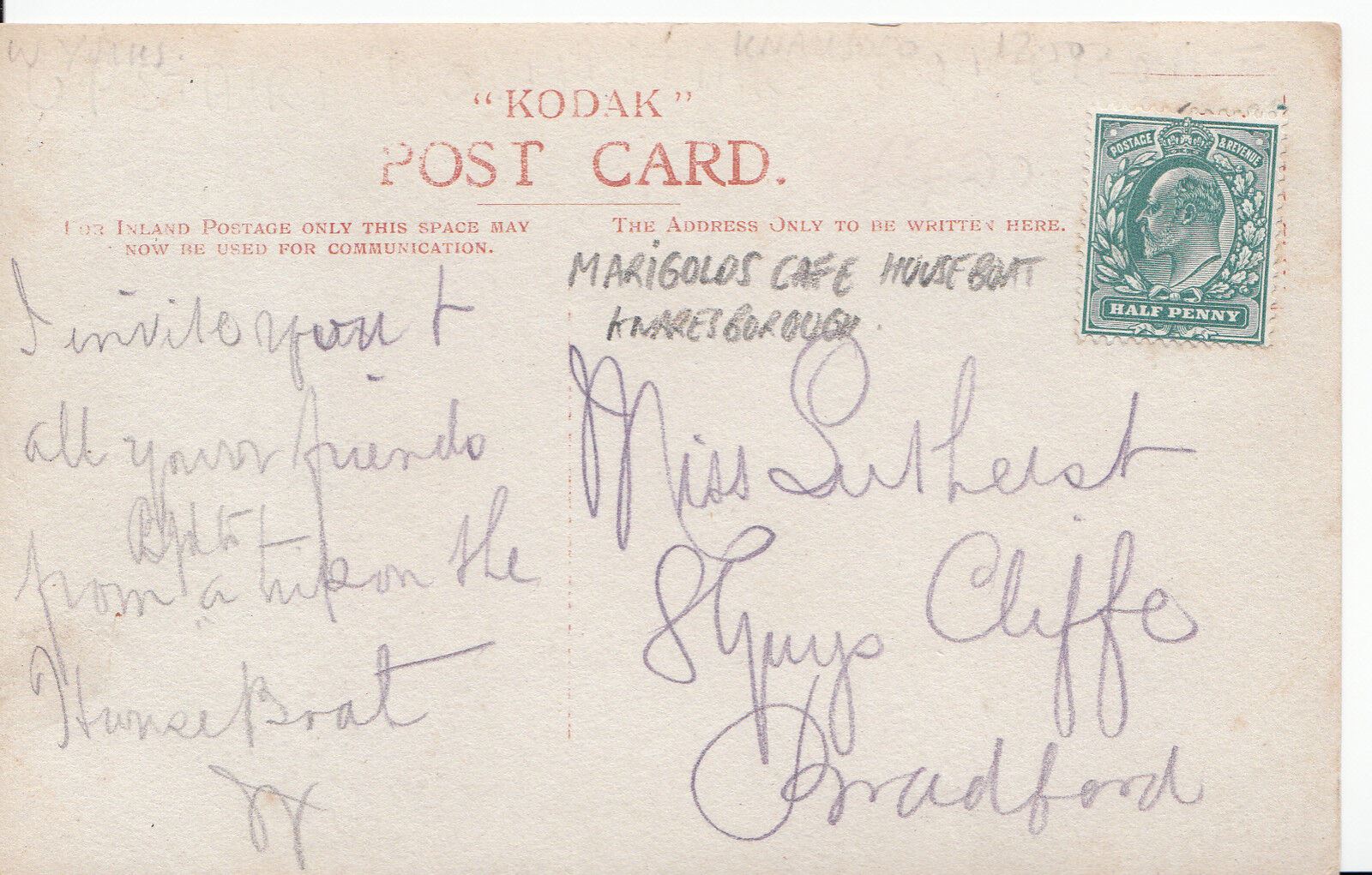 Title:   Yorkshire Postcard - Marigolds Cafe Houseboat, Knaresborough