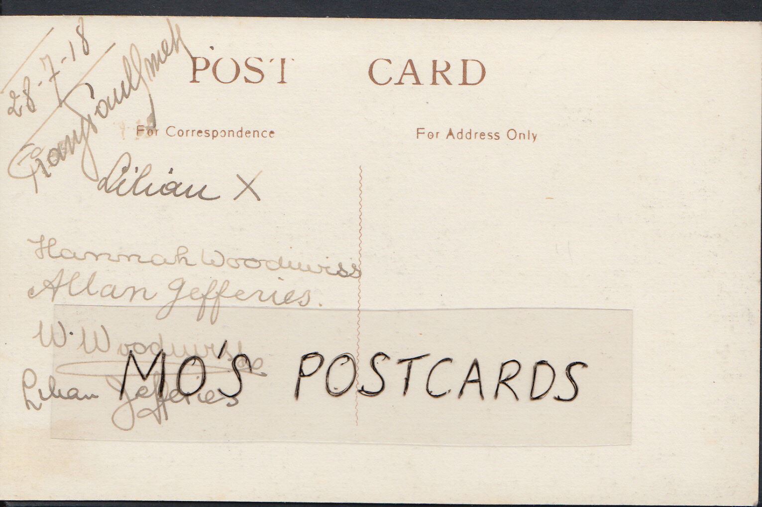 The 'Mo's Postcards' watermark does not appear on the actual postcard'.