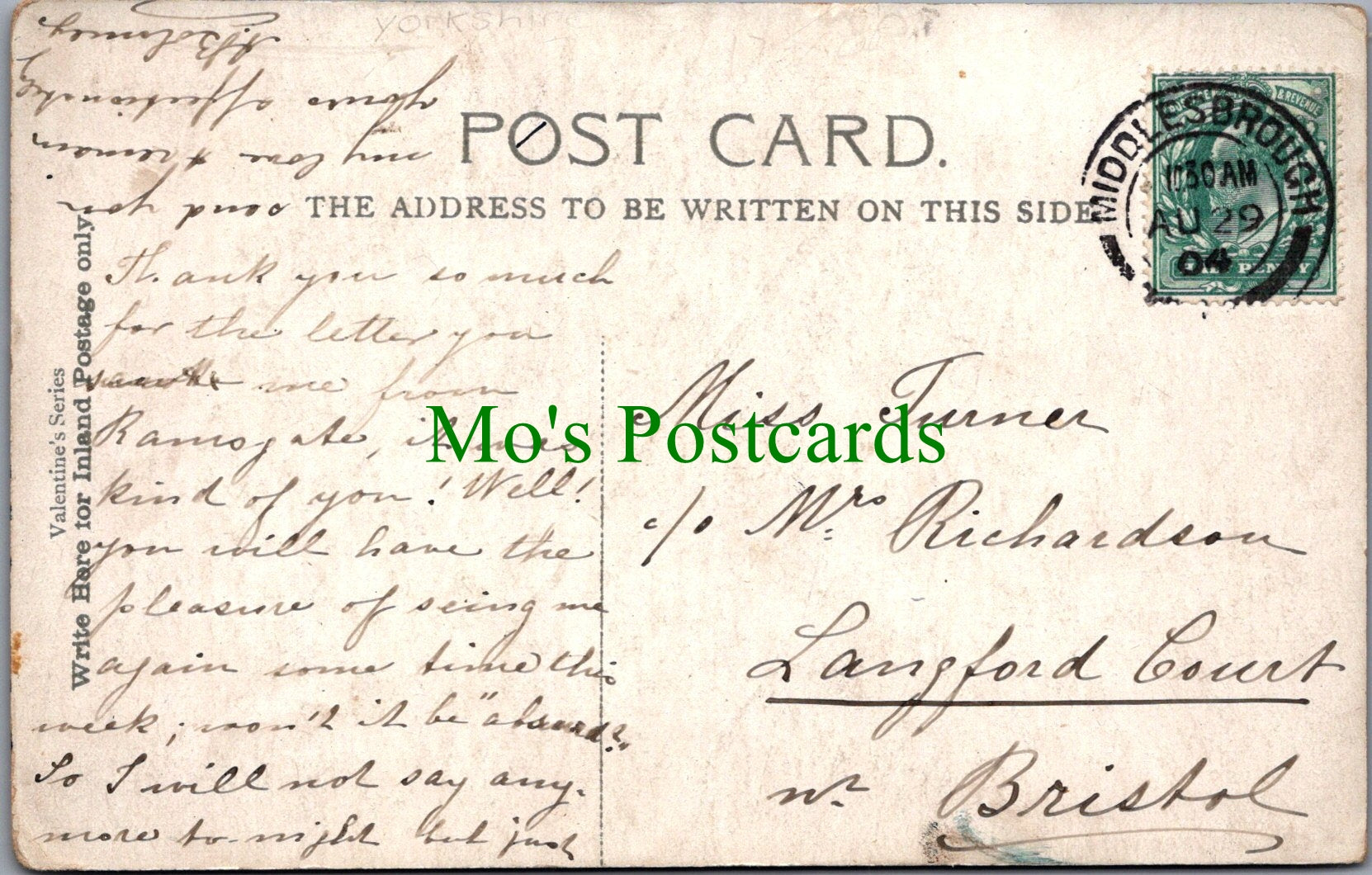 The 'Mo's Postcards' watermark does not appear on the actual postcard'.