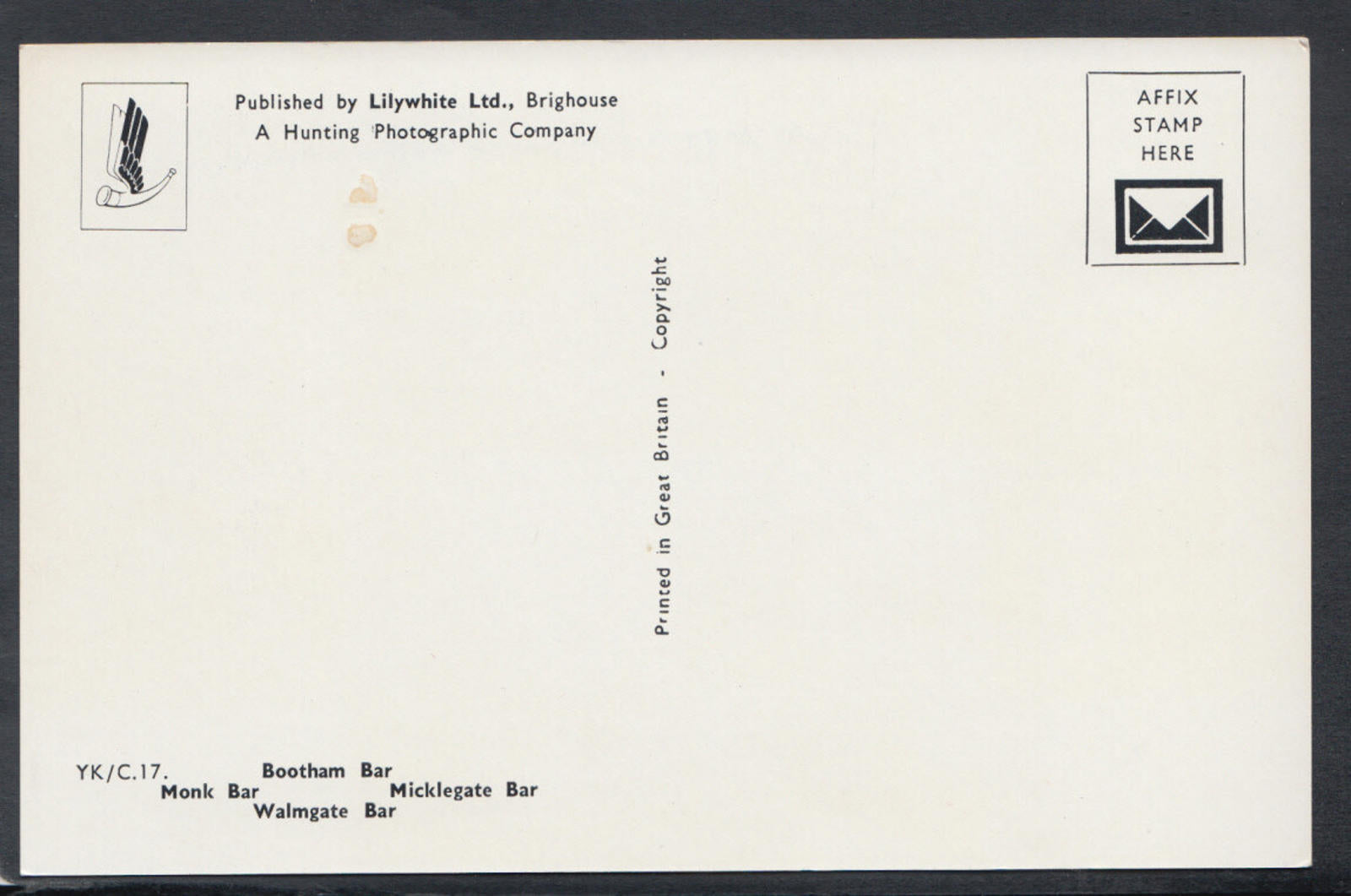 Postcard Description: Yorkshire Postcard - The Ancient Bars of York Defect(s): Slight blemish to the rear surface