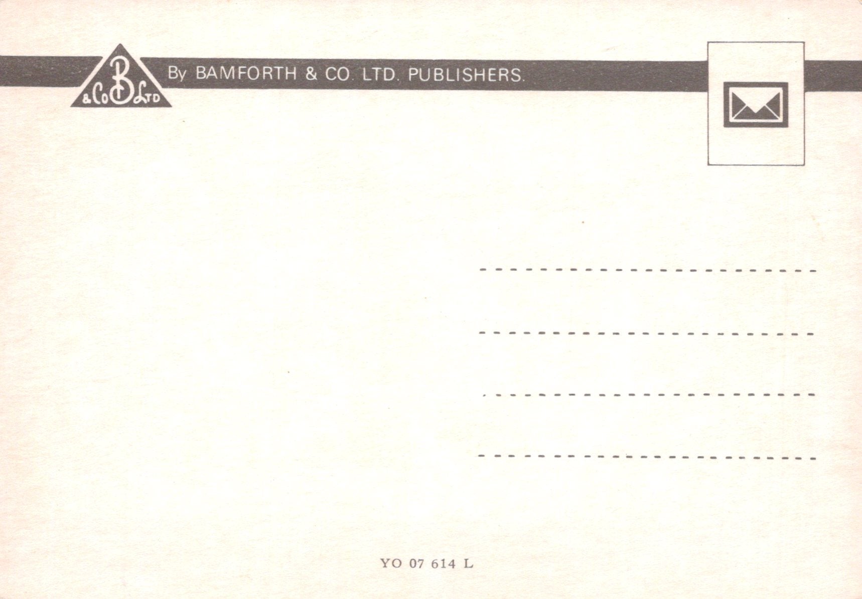Vintage-style postcard with Bamforth & Co Ltd Publishers branding on a beige background