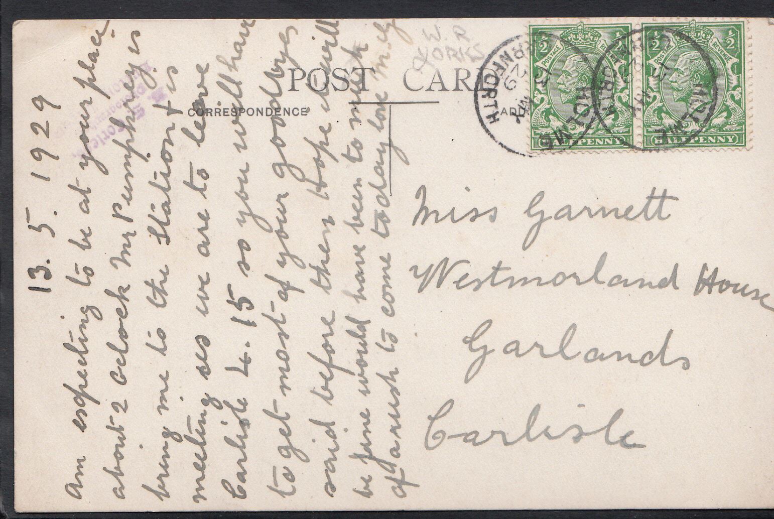 Postally Used: Posted in 1929