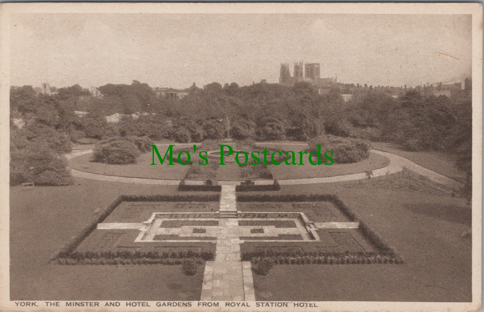 Mo's Ref: Yorkshire Postcard - York, The Minster and Hotel Gardens From Royal Station Hotel SW10495