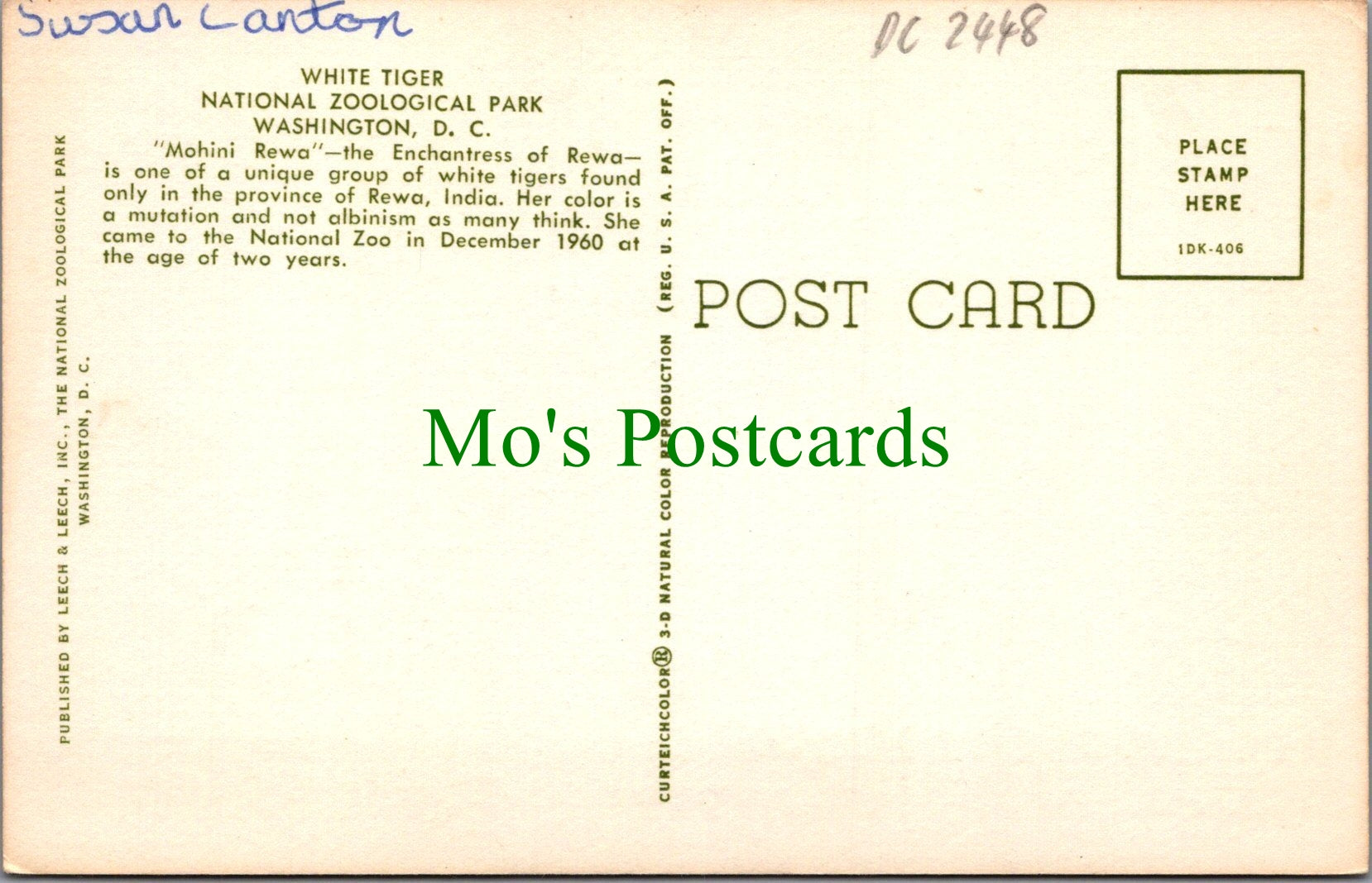 Mo's Ref:  Animals Postcard - White Tiger, Washington Zoo DC2448