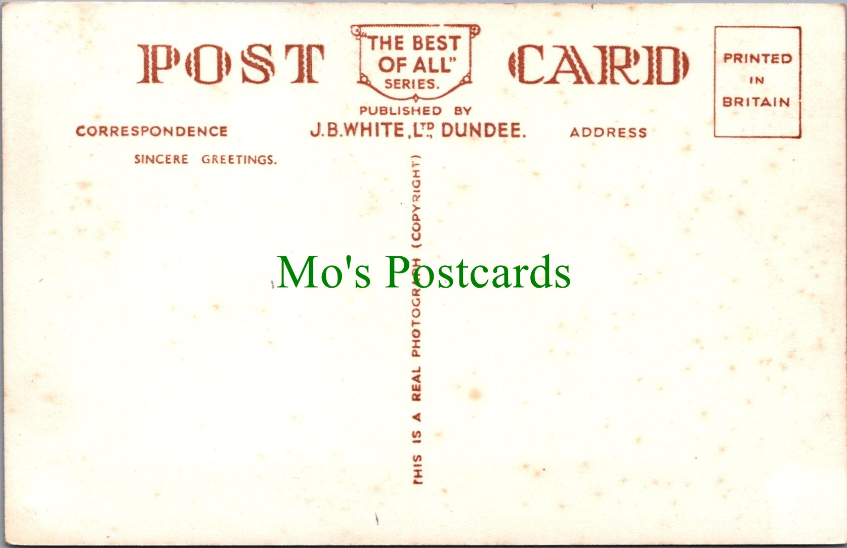 All of our beautiful postcards are posted to you inside a plastic sleeve and a board backed envelope which will be marked 'Please do not bend'. The 'Mo's Postcards' watermark does not appear on the actual postcard'.
