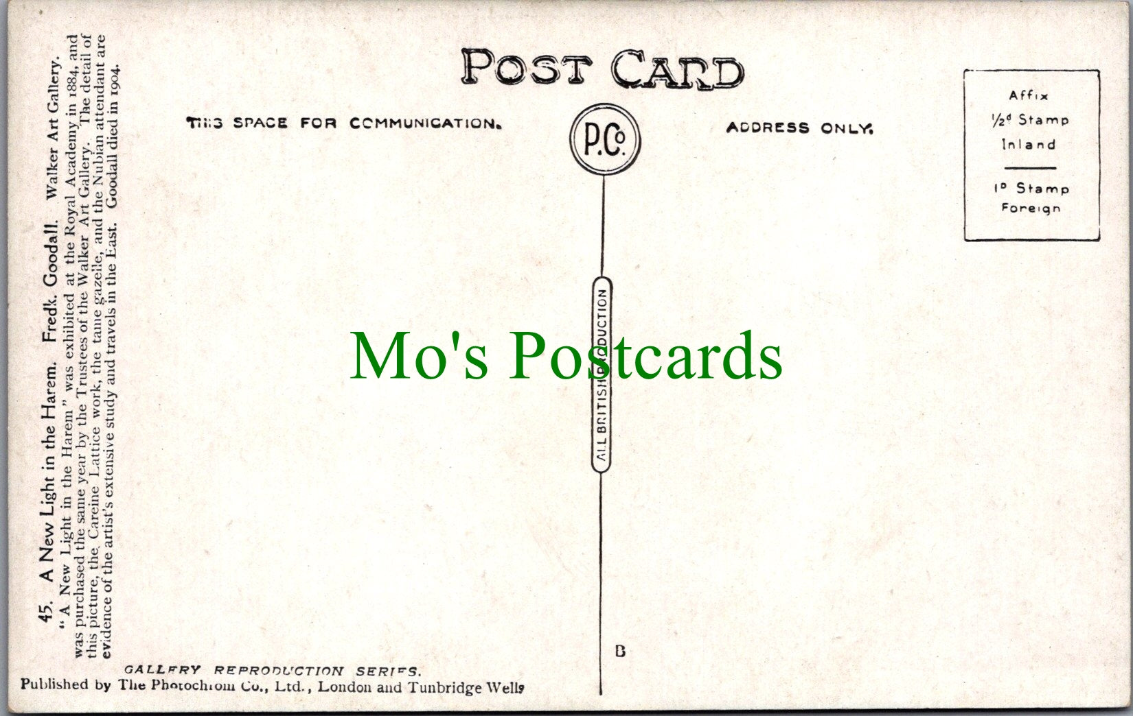 A New Light in The Harem, Frederick Goodall, Walker Art Gallery. This is a fantastic standard sized postcard which would be a great addition to your postcard collection. Published by The Photochrom Co Ltd.