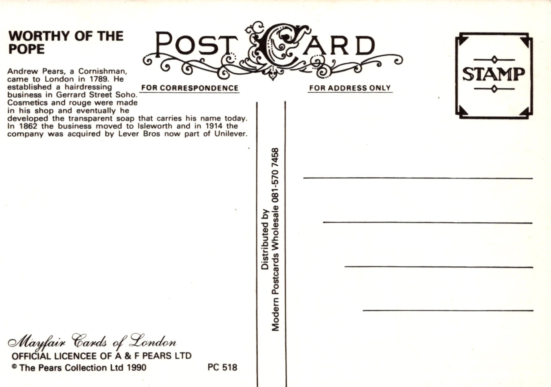 Mo's Ref: Advertising Postcard - Pears Soap, Worthy of The Pope SW19674