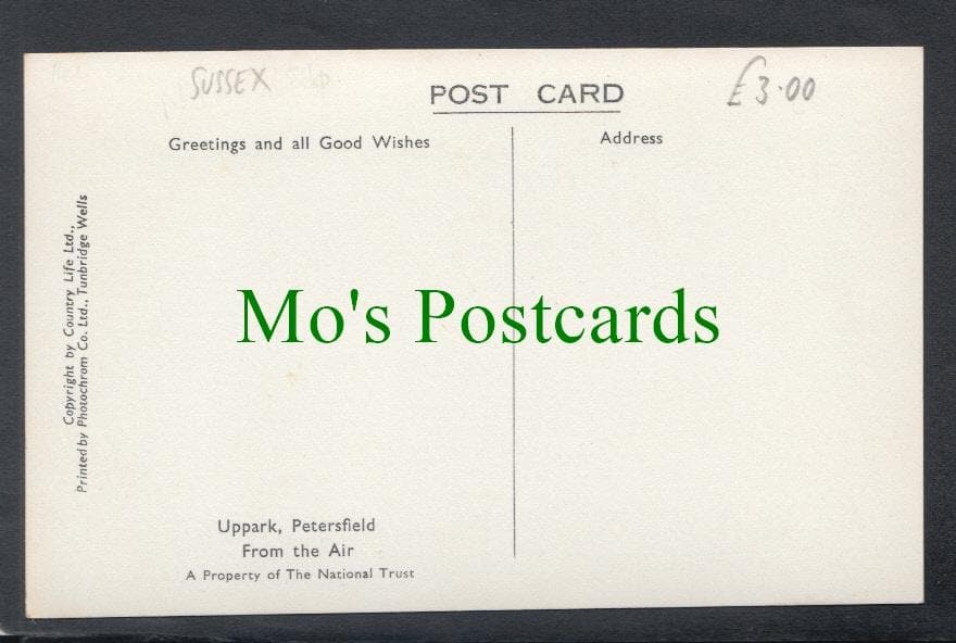 Mo's Postcards offers for sale a postcard showing an Aerial View of Uppark, Petersfield, Sussex.