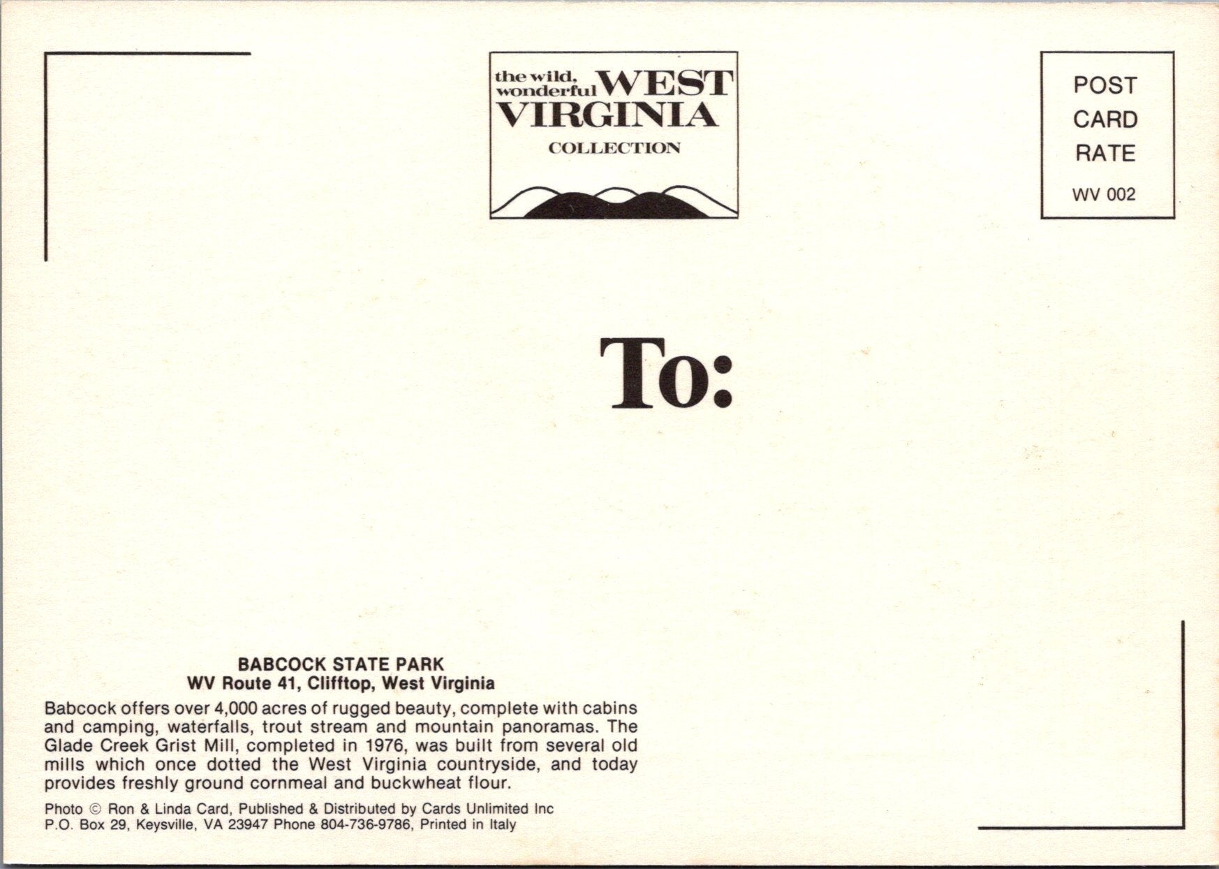 This is an America Postcard - Babcock State Park, Clifftop, West Virginia SW10326