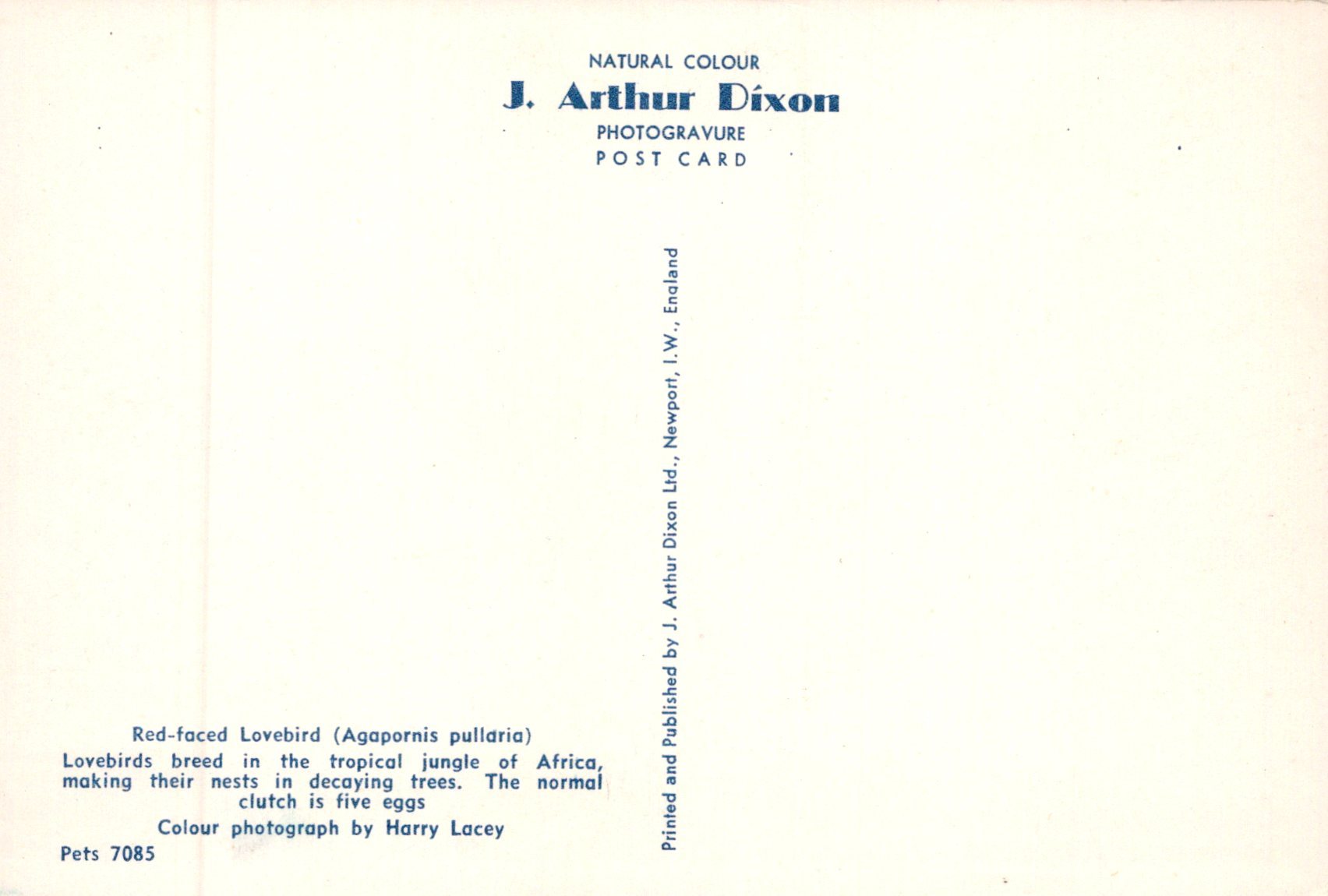 This is an Animals Postcard - Birds, Red-Faced Lovebird   VT338