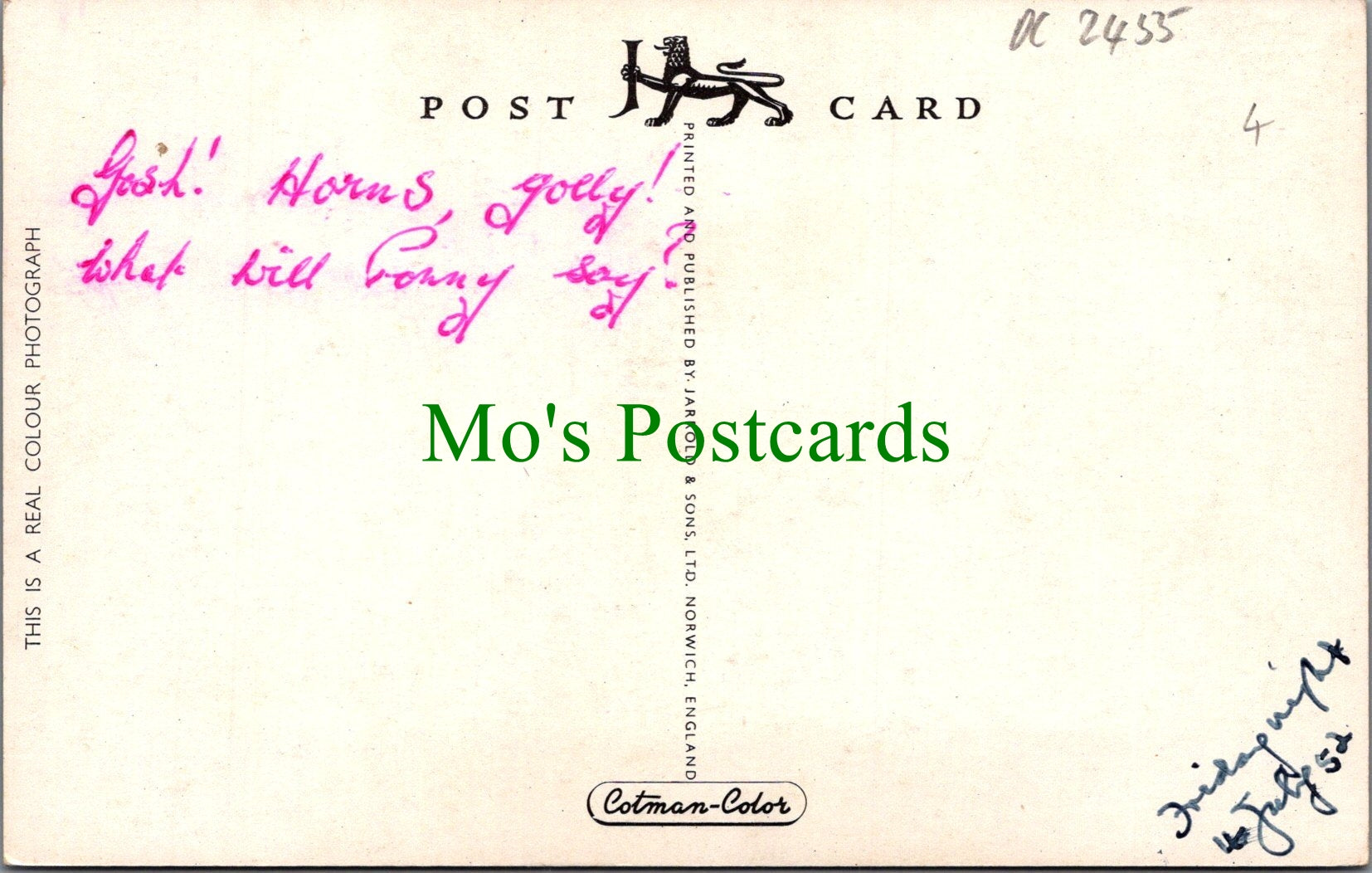 The 'Mo's Postcards' watermark does not appear on the actual postcard'.