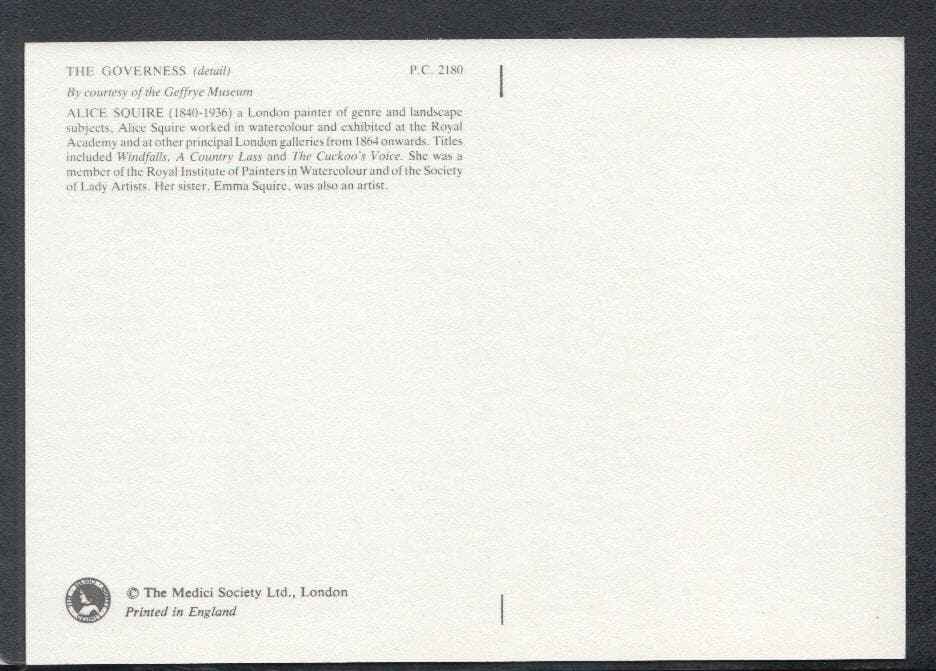 Mo's Postcards offers for sale an Art Postcard - The Governess, Alice Squire (1840-1936), Geffrye Museum.